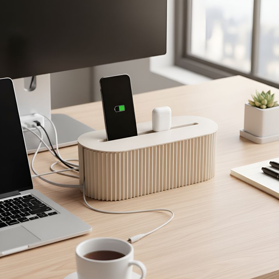 El Gestionador y Organizador De Cables Compacto y Plegable modelo 2.0 es la solución perfecta para mantener tu espacio libre de desorden. Con unas dimensiones de 13 cm de altura y 33 cm de ancho, este organizador es ideal para adaptarse a cualquier entorno, desde tu oficina hasta tu hogar. Su diseño compacto te permite almacenarlo fácilmente cuando no está en uso, lo que lo convierte en un aliado versátil.