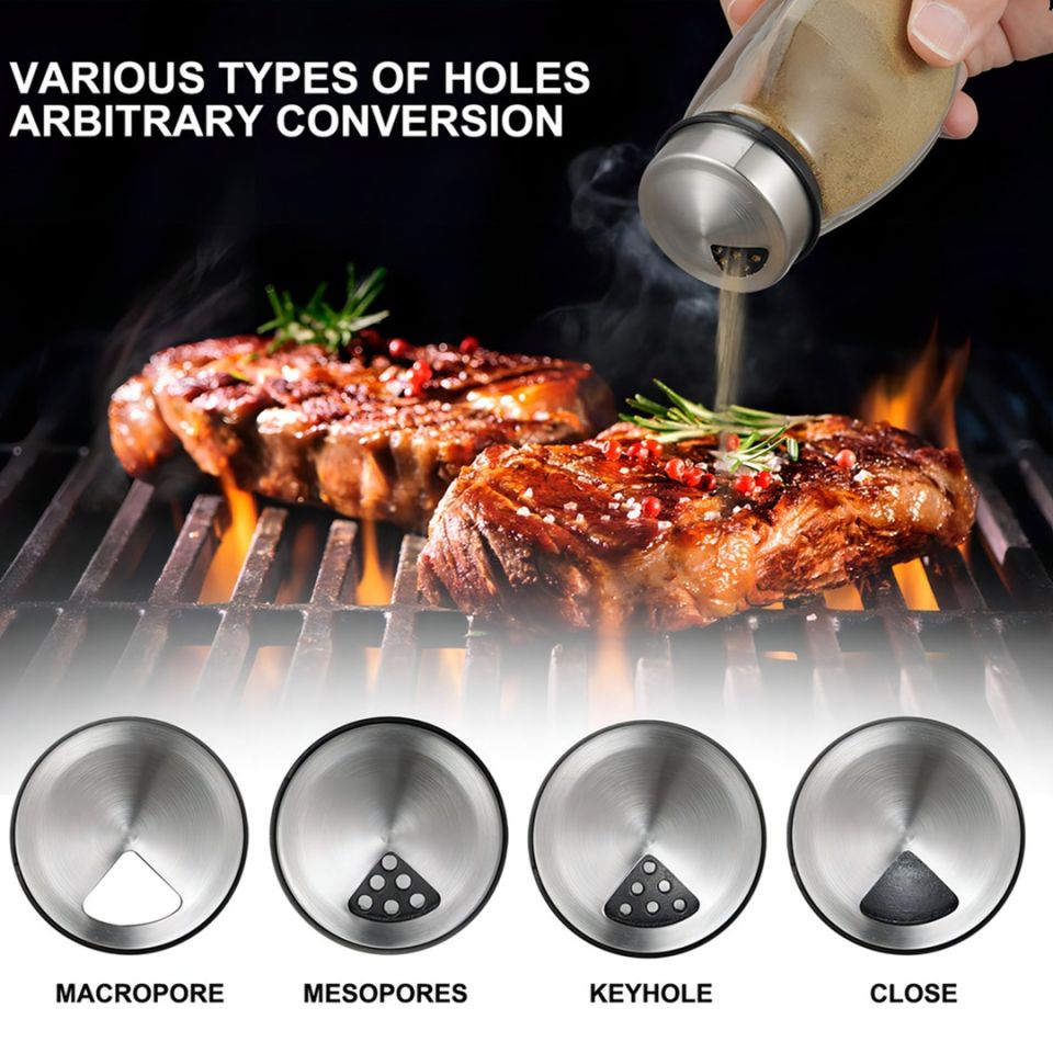 • Cada uno de los frascos incluidos tiene la capacidad ideal para almacenar tus especias, hierbas y condimentos, manteniéndolos frescos y al alcance de la mano. La combinación del vidrio y el acero inoxidable no solo ofrece durabilidad, sino que también añade un toque moderno a tu cocina.